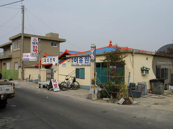 大川は韓国中西部・忠清南道の海沿いの街。1995年に大川市と保寧郡が合併して保寧市となった。通りの反対側には海水浴客向けの民宿が立ち並び、その向こうはすぐ海。