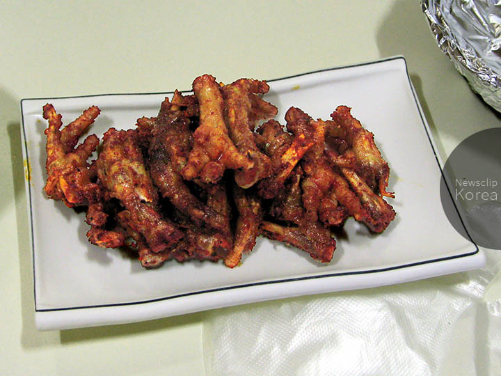 タク(닭)はニワトリ、パル(발)は足。タクパル(닭발)で鶏足を指す。コチュジャンなどと炒めて酒の肴にすることが多い。韓国東北部・江原道江陵市で。