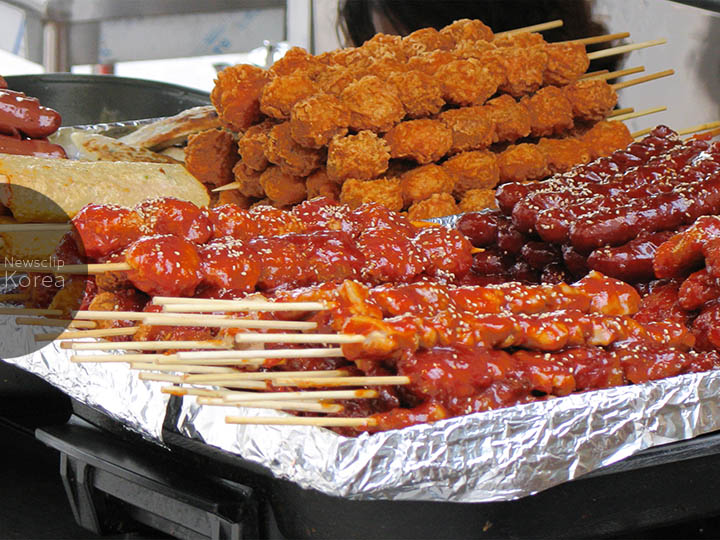 ニワトリ(タク 닭)+串料理(コチ 꼬치)=タッコチ(닭꼬치)。鶏肉を串焼きにした韓国式焼き鳥。日本の焼き鳥に比べてひと串が大きい。小腹が空いた時に食べる屋台料理の1つとして定着している。