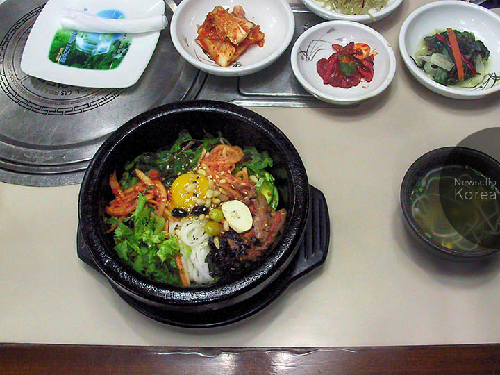 ソウル旧市街・明洞の全州中央会館で。同時期の全州の食堂に比べて小鉢類の数が少ない。