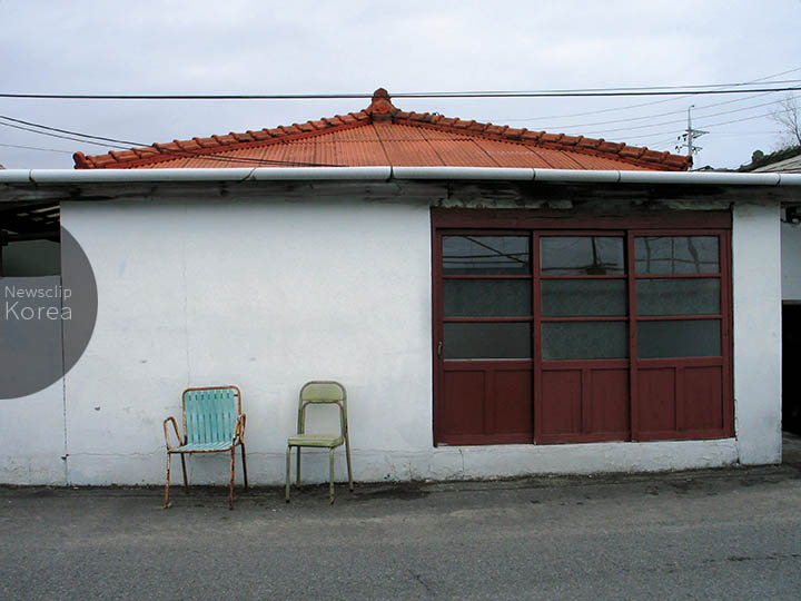 韓国東北部・江原道束草市の沿岸。屋根や引き戸の形からして日本統治時代の日本式家屋のようにも伺える。