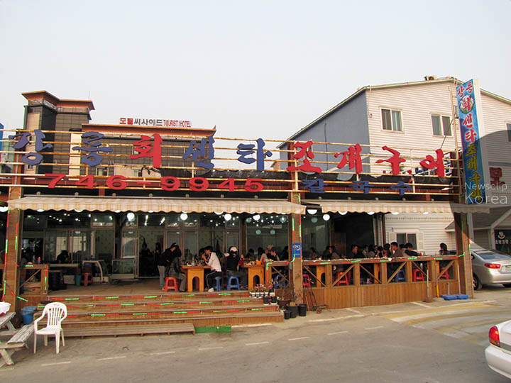 焼肉と同様に網で貝類を焼く店。海水浴のオフシーズンでも都心などからの行楽客で賑わう。
