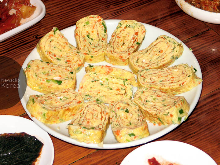 出し巻き卵風に巻いて作る韓国式卵焼き。“ケラン” は漢字で “鶏卵”。家庭料理として作られるほか、居酒屋のつまみとしても定番。三清洞の居酒屋で。