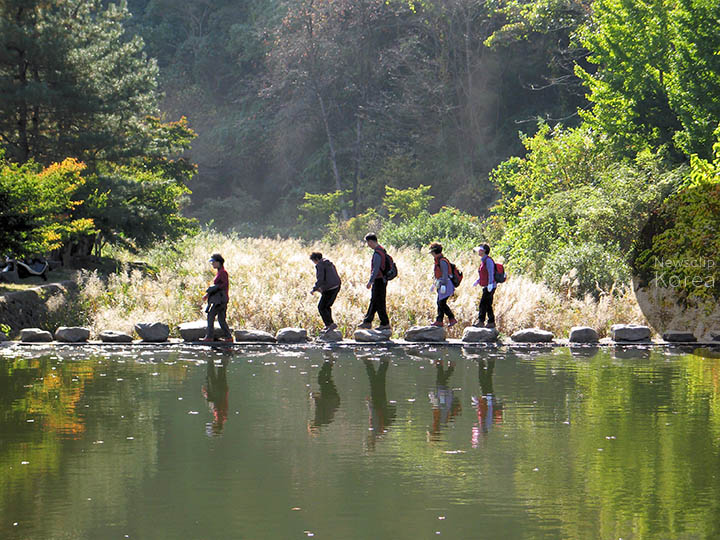 韓国南西部・全羅北道〜全羅南道の内蔵山国立公園で。手頃なハイキングが国民的レジャーとなっている。
