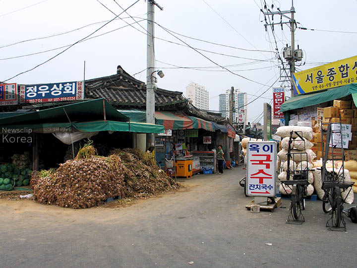 京東市場はソウル旧市街の東に位置する巨大生鮮食料品市場。国内最大の漢方薬市場としても有名。朝鮮戦争後に東北部・江原道からの農産物集積所として自然に市場が形成され、1960年に正式開設された。