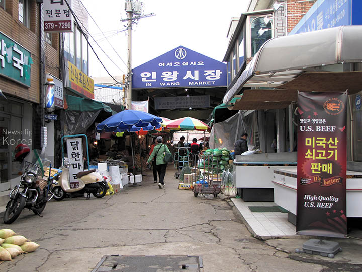ソウル旧市街・西大門区の在来市場。農水産物の卸売りが中心。1960年代から市場が形成され、1972年に仁王市場として正式に開設された。