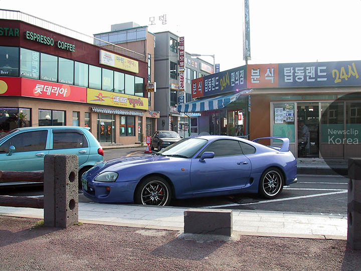 済州島北岸の街・済州市の街角で。車種はトヨタ・スープラ。撮影時にはすでに生産終了していたモデル。