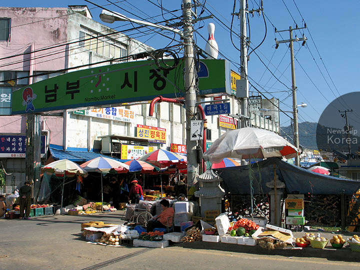 全州南部市場は韓国南西部・全羅北道全州市の南東部に位置する在来市場。朝鮮王朝時代中期から全州城の周囲に市場が形成され、日本統治時代に現在の場所へまとめられた。撮影は2004年。近年また近代化が進んでいるが、写真の一角は2014年にもあまり景色が変わっていなかった。総面積2万1349㎡。