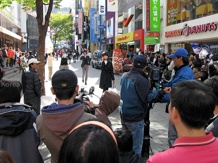 ソウルの明洞で行われていたドラマの撮影。作品名は不詳。