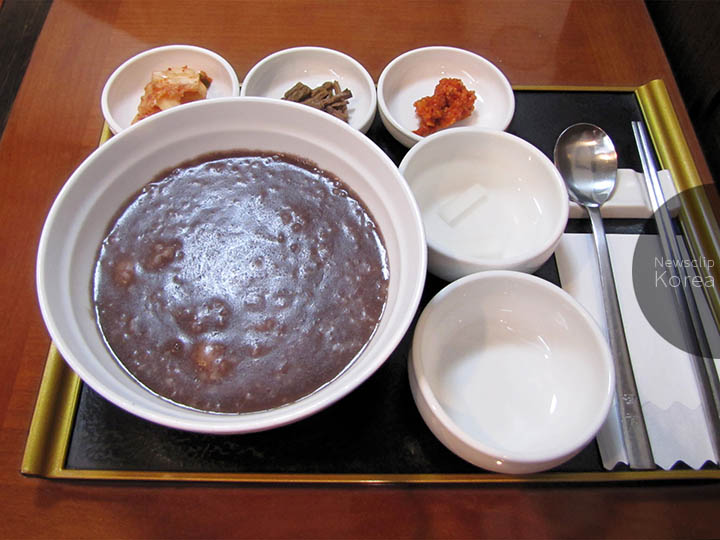 現地では “パッチュク 밭죽” と呼ばれる。日本のぜんざいなどに比べると味つけが控えめで、甘さよりアズキの素朴な風味が勝っている。