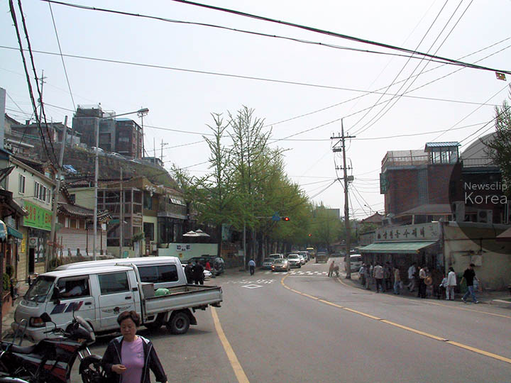 ソウル旧市街・景福宮北側の三清洞通り。いまはモダンなカフェやショップがひしめき合う商業地だが、この頃はまだそうした店は数えるほどしかなかった。右に見える人気の食堂 “三清洞スジェビ” もいまでは明洞にあるような外装に変わっている。