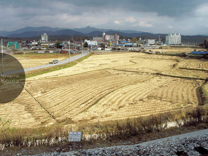 韓国南西部の全羅北道・益山と南西端の全羅南道・麗水を結ぶ全羅線の景色。南原駅の少し手前あたり。