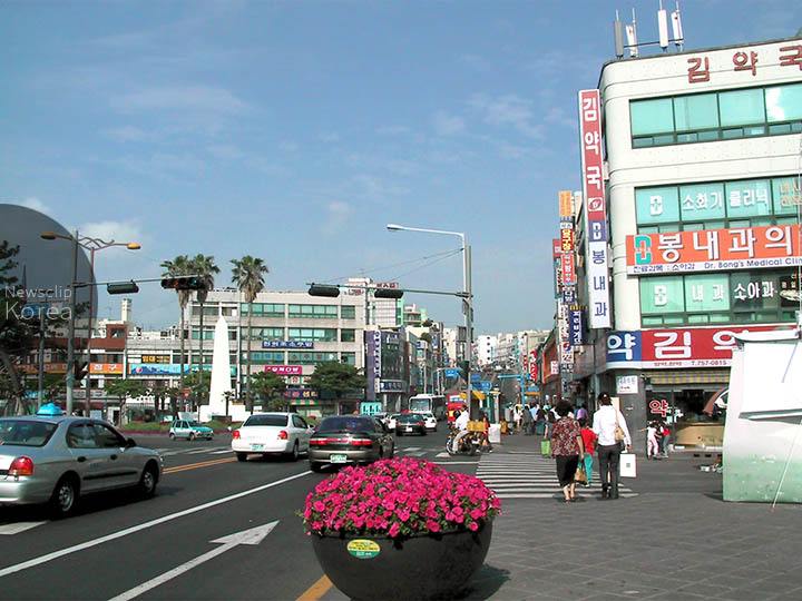 済州島の北岸。島内で最もにぎわいのある道庁所在地。