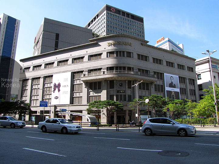 ソウル旧市街・中区。日本統治時代の1930年に建てられた旧・三越京城店の建物が、現在も新世界百貨店本店として利用されている。解放後は、地元資本により東和百貨店と改称。1963年以後はサムスングループに吸収されて新世界百貨店となった。1991年、サムスングループから独立。