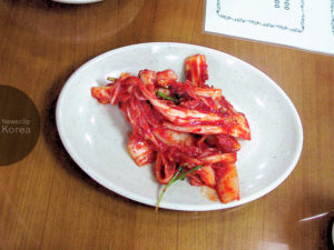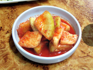 初夏の味覚。現地ではオイギムチ(오이김치)と呼ばれる。ソウル旧市街・仁寺洞の食堂で。