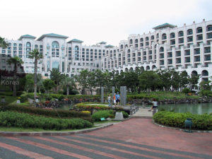 ホテルロッテ済州から海岸を見下ろす。済州島南部は雨が多く、特に6〜8月の西帰浦市の降水量は東京の約1… Read More