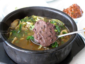 竜遊島・乙旺里で。ソンジはウシの血を煮固めた食材。風味はレバーに近い。これを具にしたスープをソンジク… Read More
