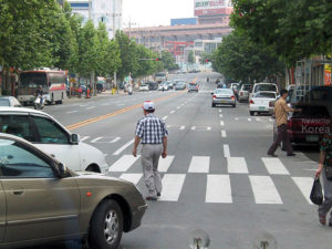 韓国南東部・大邱市。2003年撮影。通りの突きあたりが東大邱駅。