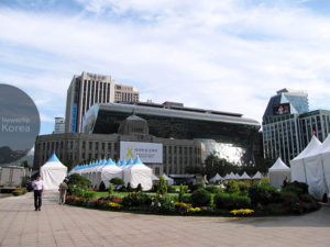 建物は1926年竣工の旧京城府庁舎。解放後に旧ソウル市庁舎となった。写真は年末年始のライトアップ中。… Read More