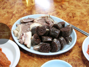ソウル旧市街・麻浦区の孔徳市場で。スンデはブタの血液を主な材料とする伝統の腸詰料理。モチゴメ、春雨、… Read More