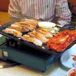 済州島の南岸・西帰浦市で。2003年撮影。皿の中央の白い切り身は済州島の名産とされるタチウオ。