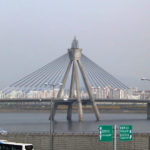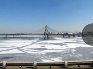 ソウルの中心を東西に流れる漢江。しばしば寒波に見舞われて凍結する。奥の橋はオリンピック大橋。