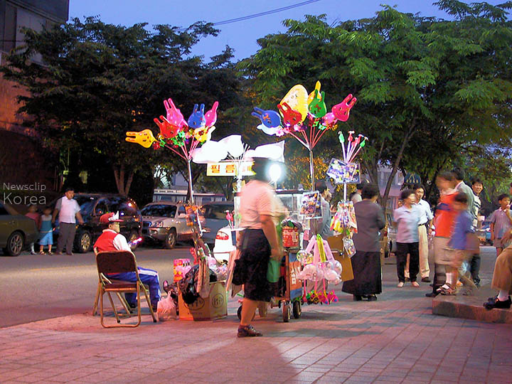 街角で幼児向けのチープな玩具を売る移動屋台。韓国南西部の東大邱で。