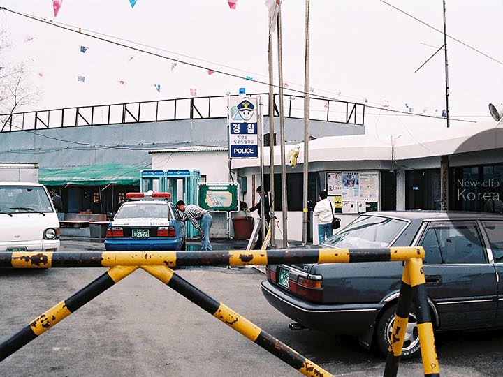 仁川市郊外の行楽地・月尾島の一角。1997年撮影。海岸沿いに刺身店や遊園地が並ぶ光景はいまも健在。