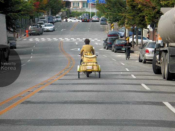韓国ヤクルトは日本ヤクルトの関連会社。日本の “ヤクルトレディ” と同じく、女性販売員が訪問販売などに従事している。2004年、全羅北道全州市で。